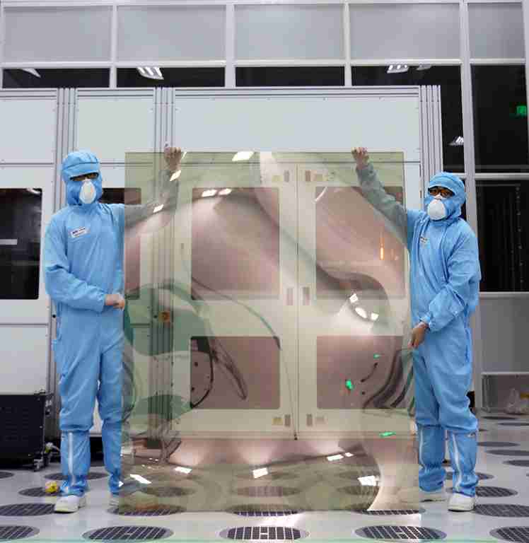 财神娱乐昆山厂第六代 LTPS (低温多晶硅) 生产的玻璃基板尺寸为 1500x1850 mm (毫米)